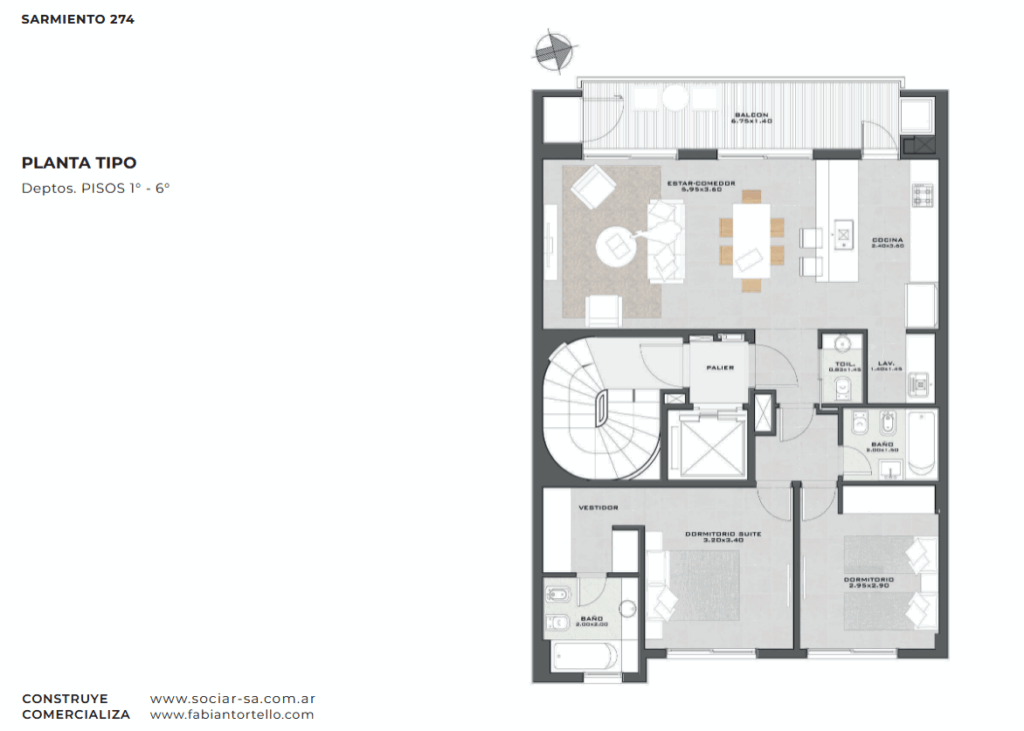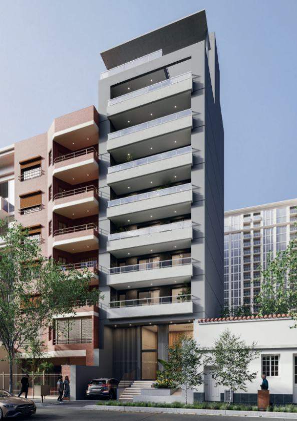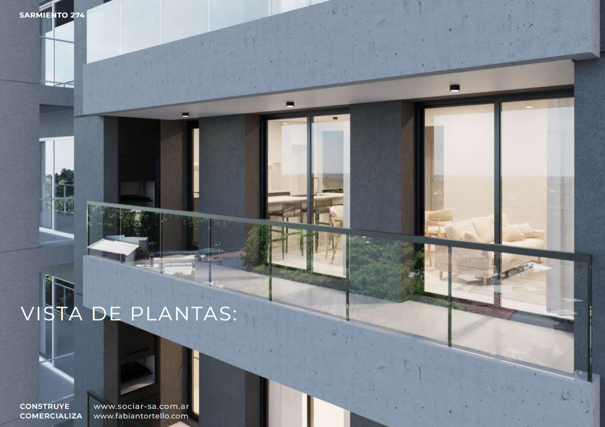 Torre de 18 pisos con departamentos de 2 y 3 ambientes con cocheras semicubiertas y subterráneas.